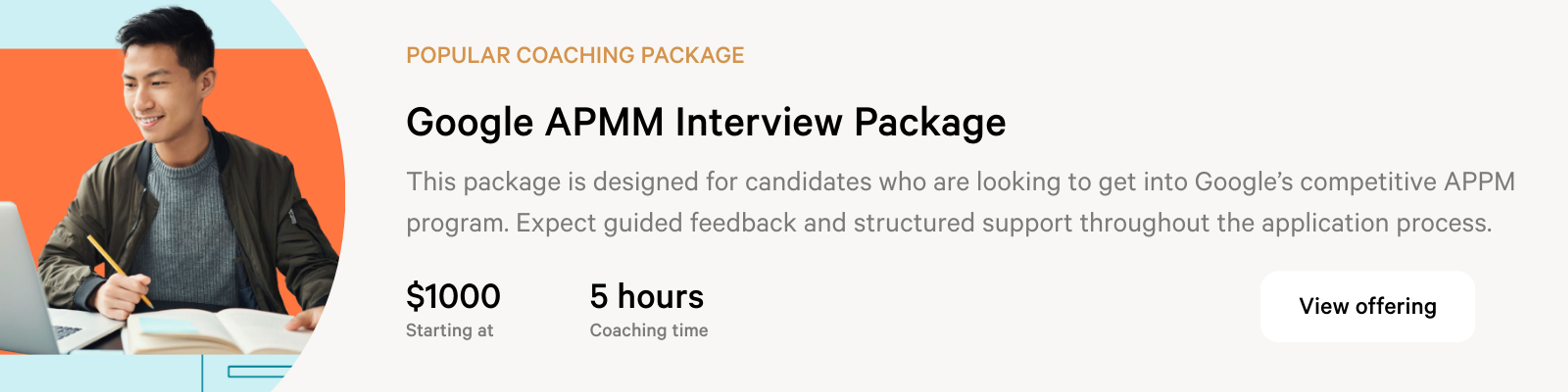 Work with a top marketing coach who’s helped others break into Google. From polishing your resume to perfecting your interview strategy, they’ll help you stand out and show up ready. Browse APMM coaches here.
