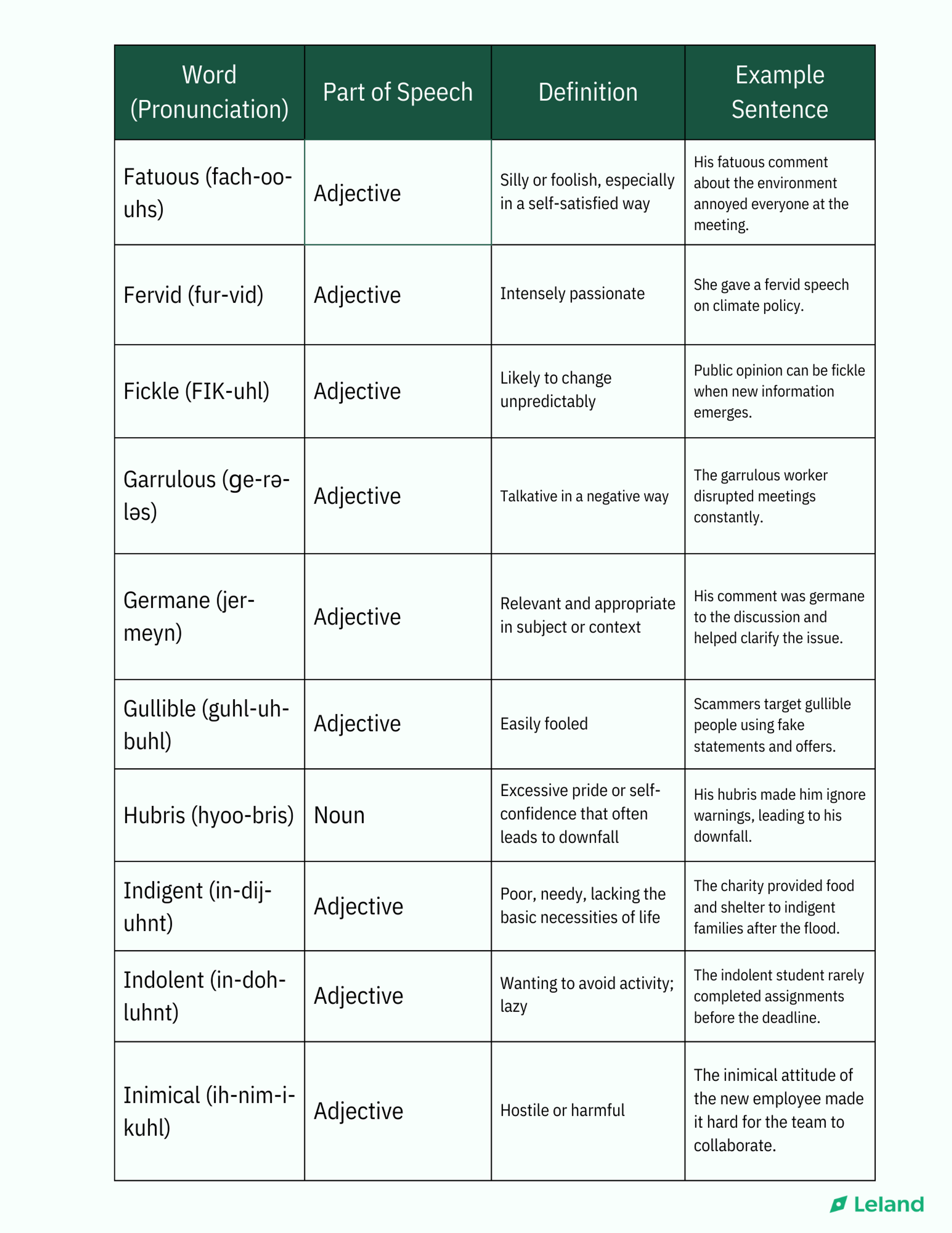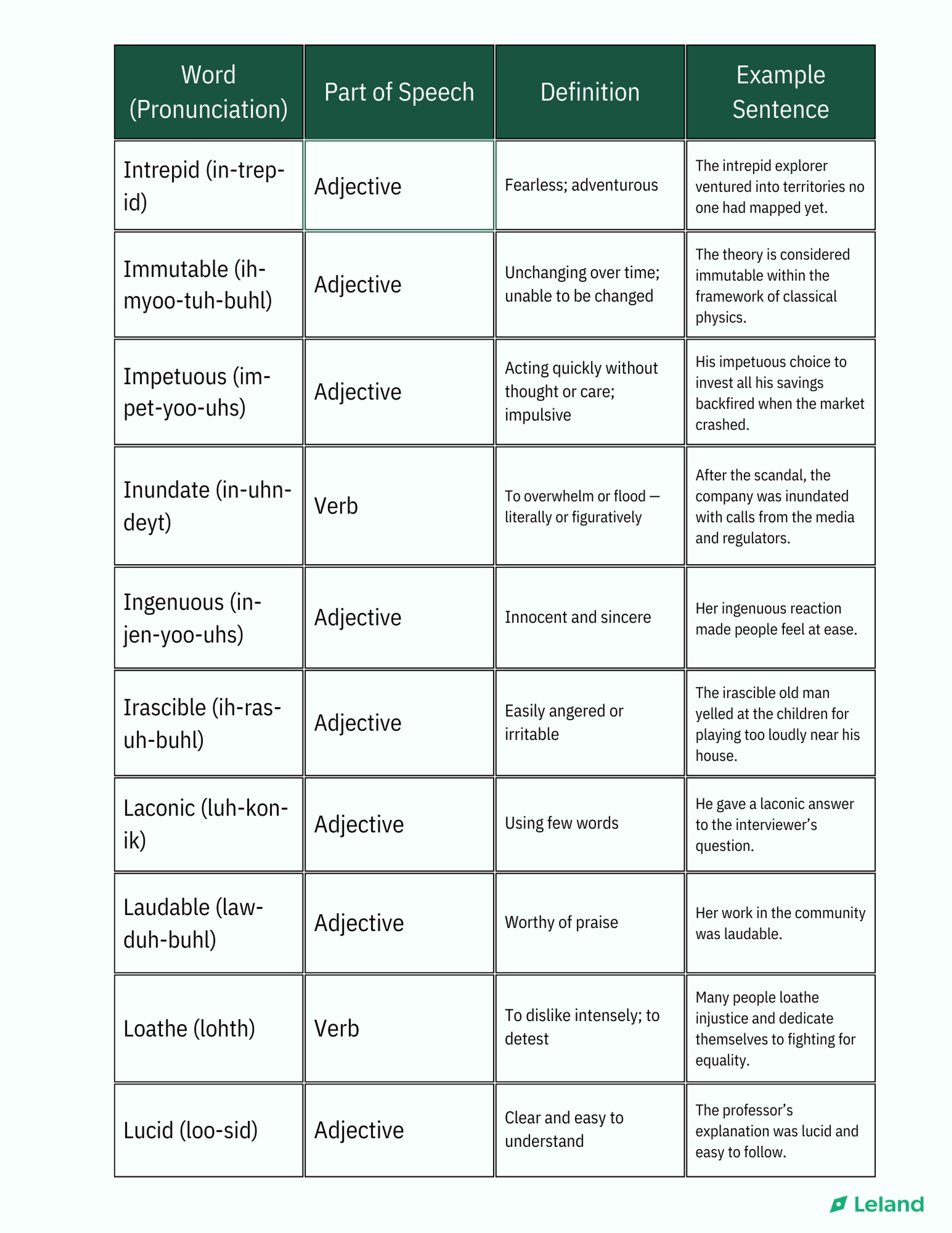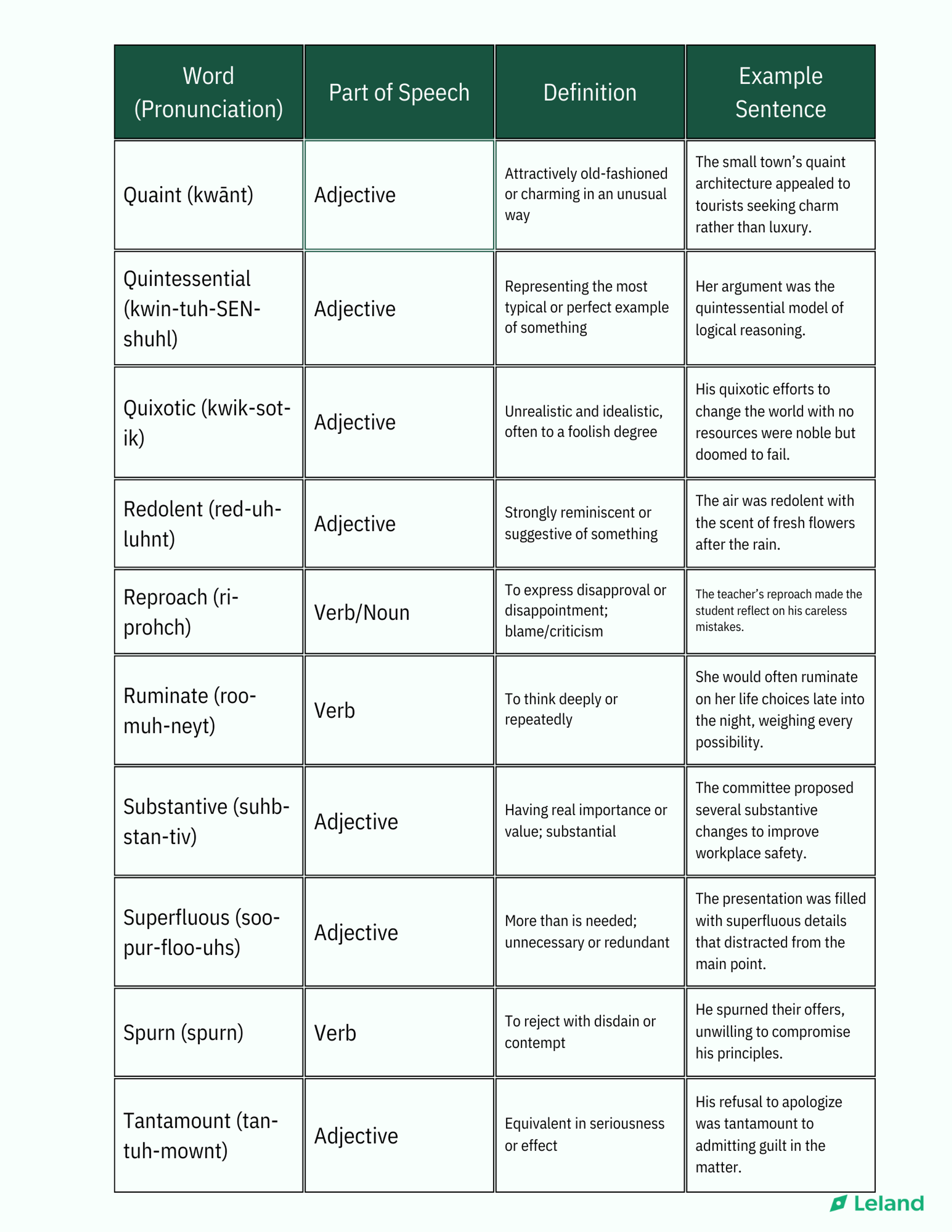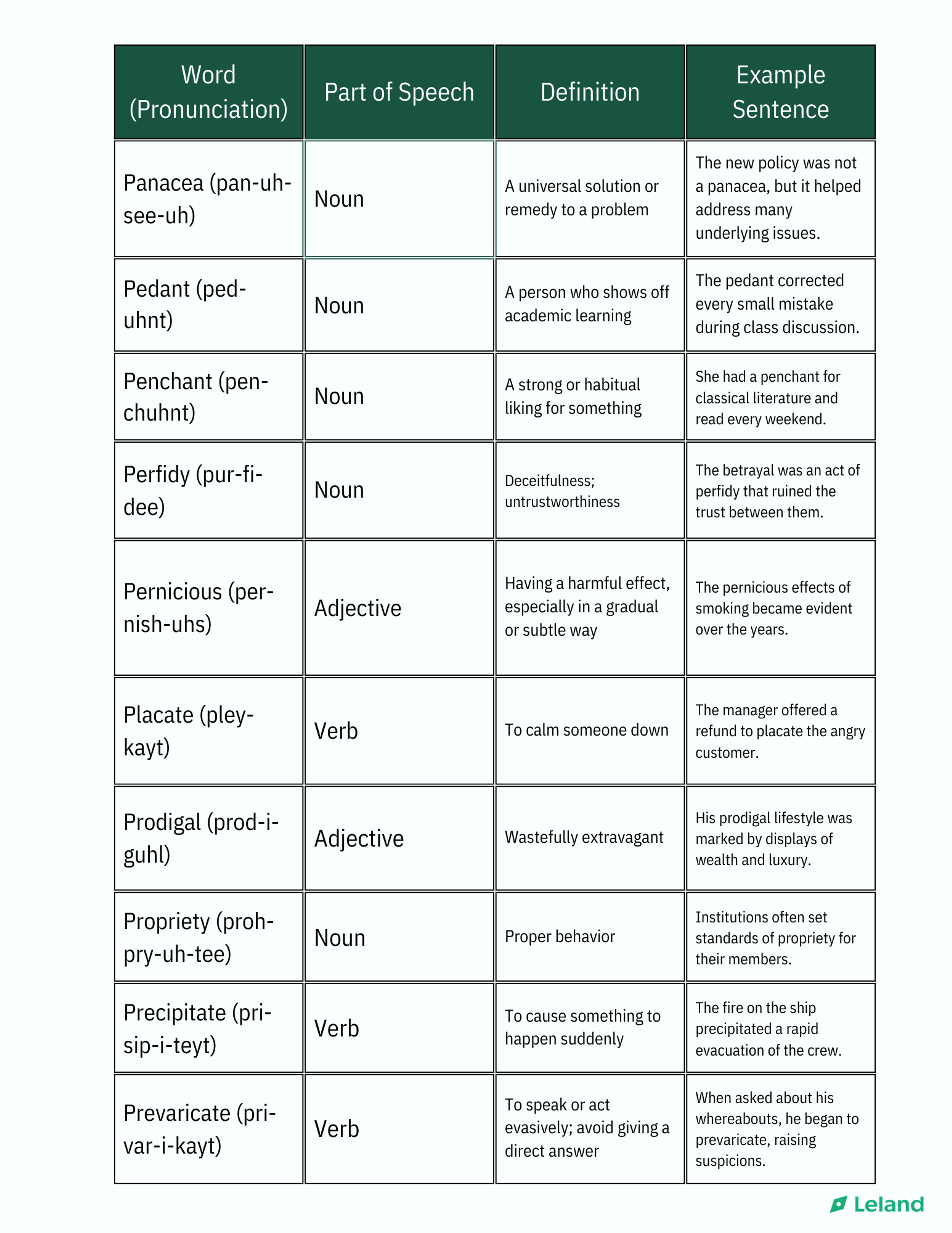 If you’re seeking more personalized guidance to help you prepare for the GRE, reach out to our GRE experts. Learning words is easier when you have expert support. A GRE coach can: Build a custom study schedule based on your target score and availability, help you decide which areas to focus on, and keep your practice consistent and on track. You’ll get guidance from someone who understands the test and how to improve scores quickly. Find a GRE coach on Leland to start making consistent progress.
