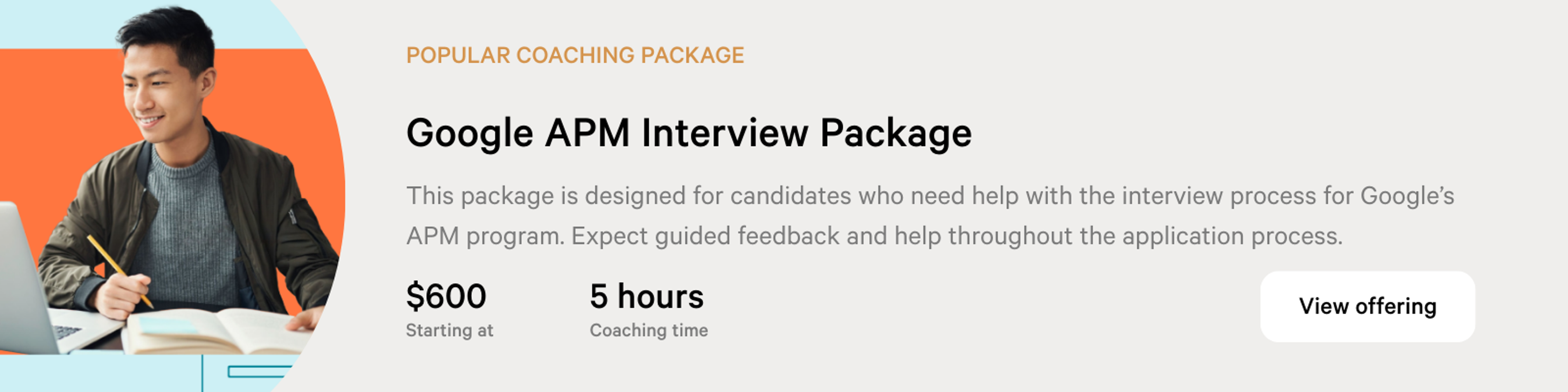 The Google APM program is a fantastic opportunity for aspiring PMs. If you're interested in pursuing a career in product management and want to learn from titans of industry, the APM program is a great place to start. The best way to land a top product management role is to work one-on-one with a coach who can provide personalized guidance and expertise. Below are some of our top coaches with PM experience at top companies; browse all of them here.