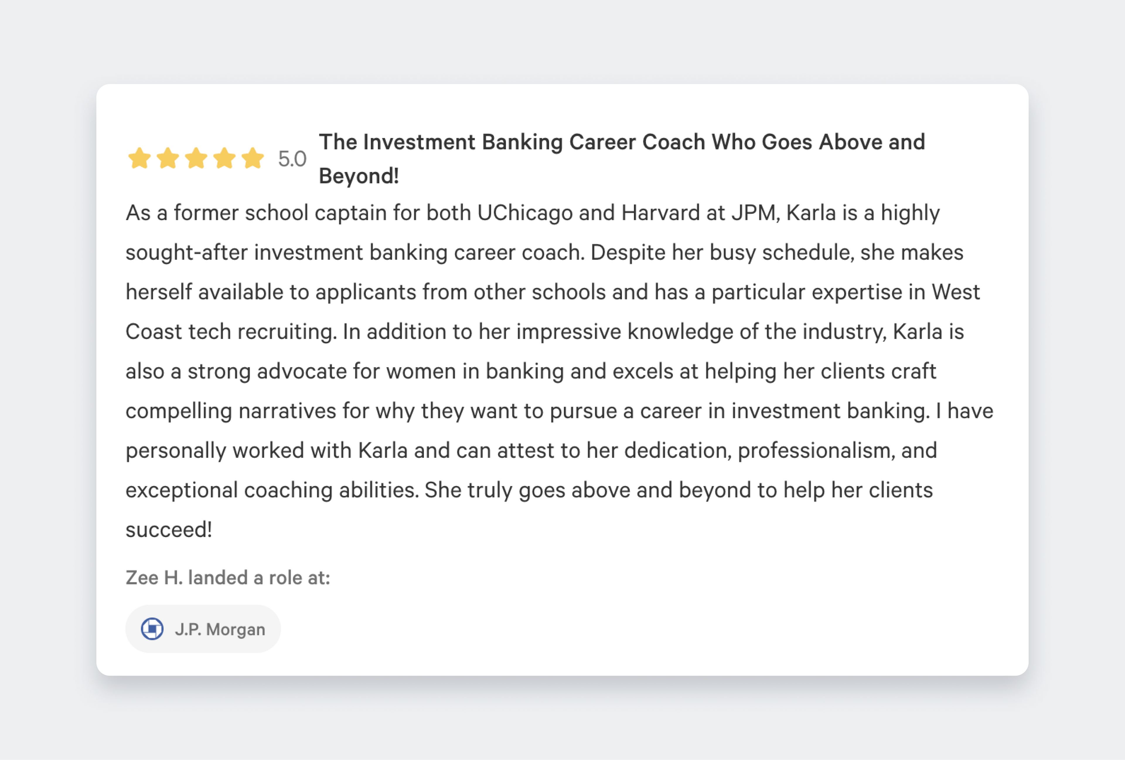 - Coaches for: Investment Banking, Private Equity