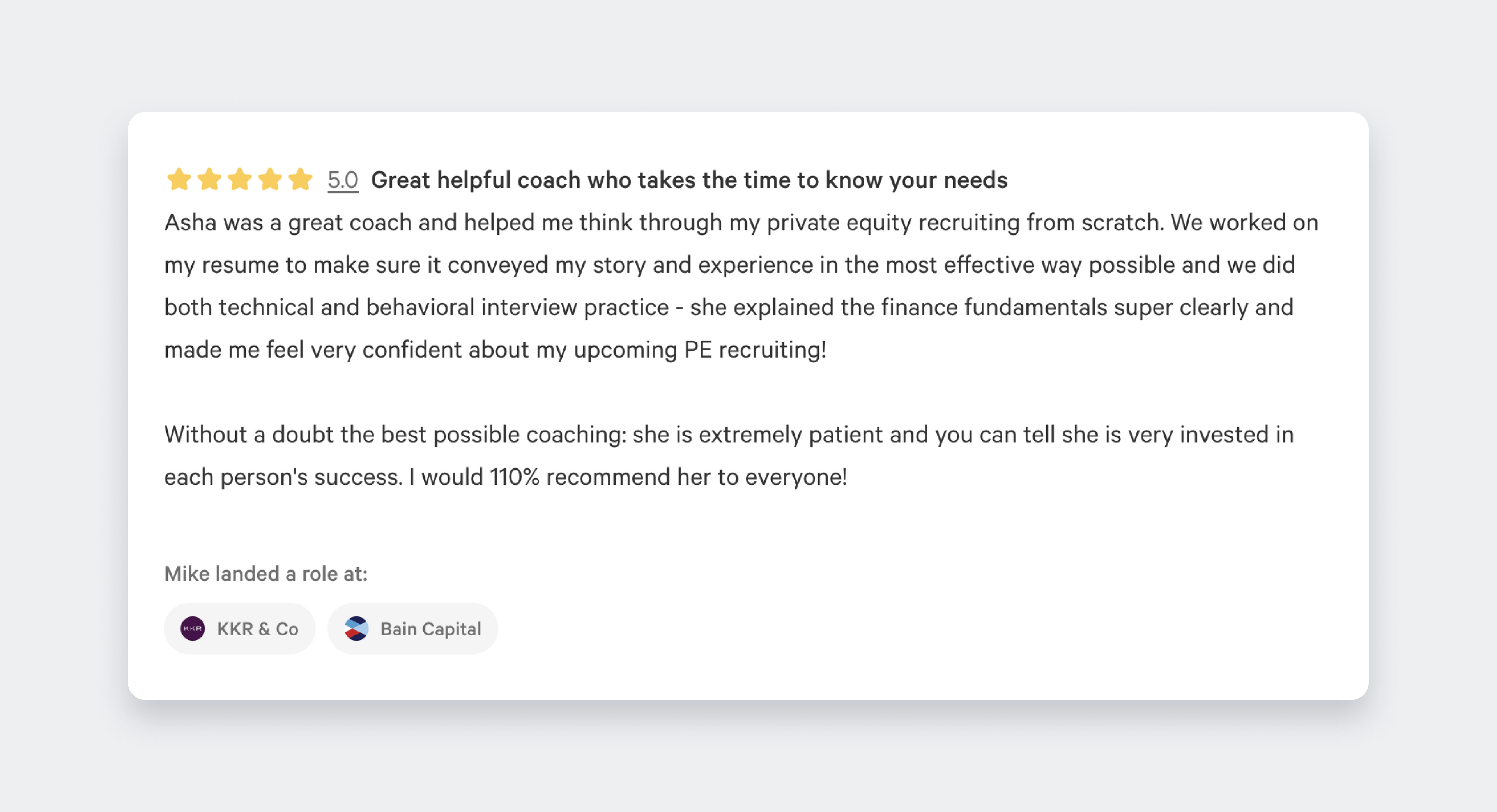- Coaches for: Private Equity, Investment Banking