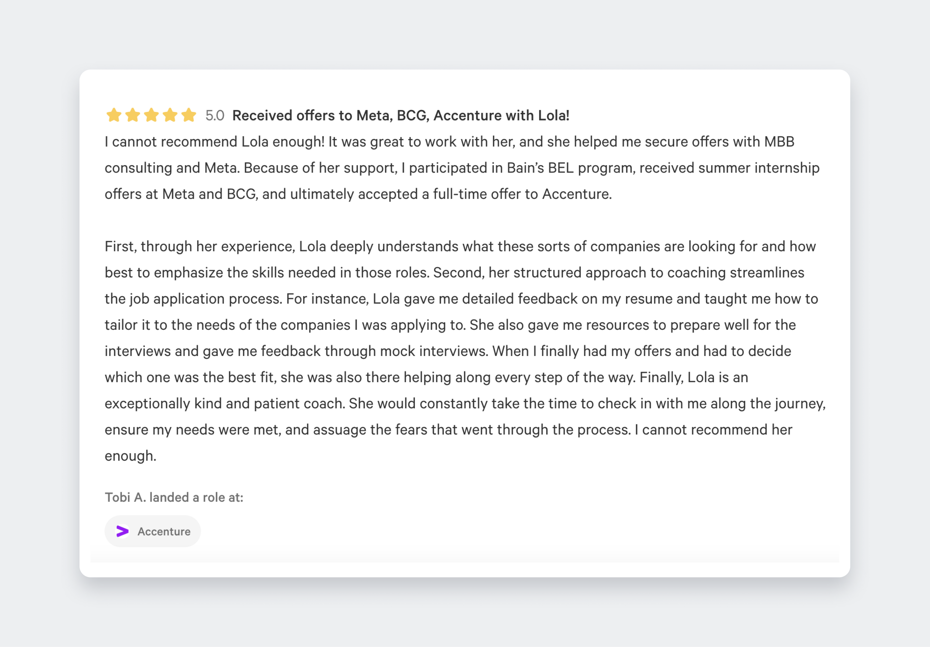 When one of my clients landed their dream management consulting role after 6+ months of work together. All of the work we did together was worth it because he's set himself up for success for the rest of his career.